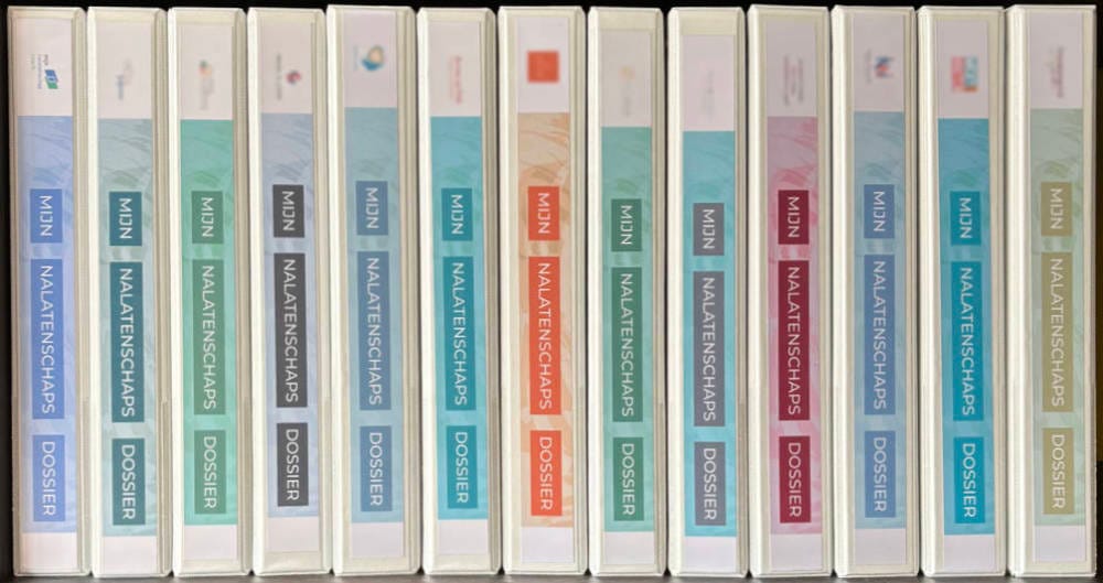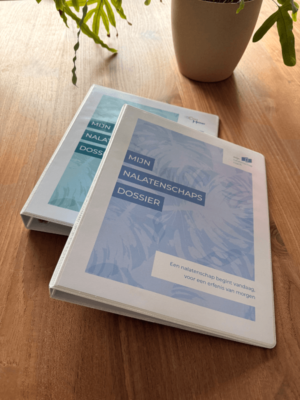 Het is speciaal ontwikkeld om ook jouw klanten op een zorgvuldige en overzichtelijke manier te begeleiden bij hun nalatenschapsplanning. Dit dossier is niet alleen een waardevolle toevoeging aan je dienstverlening, maar wordt ook gepersonaliseerd met je eigen logo en bedrijfsgegevens, zodat je het direct kunt gebruiken als dienstverlening bij je klanten.